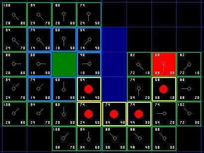 4,不同的地形损耗:在这个教程和我附带的程序中,地形只有两种-可通过的和不可通过的。但是你可能会需要一些可通过的地形,但是移动耗费更高-沼泽,小山,地牢的楼梯,等等。这些都是可通过但是比平坦的开阔地移动耗费更高的地形。类似的,道路应该比自然地形移动耗费更低。
