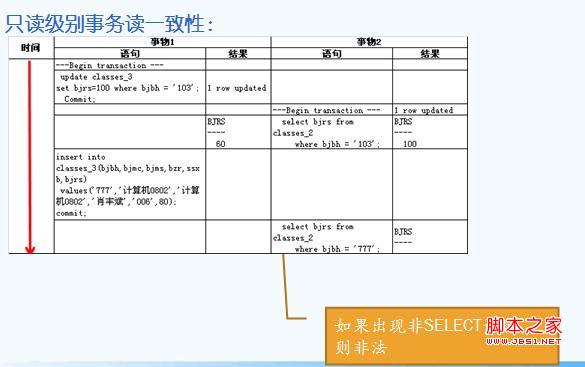 •锁在事务保持期间是被保持的,用来防止包括脏读、丢失更新和破坏性DLL等交互行为。对一个事务中SQL语句所做的修改只有在该事务提交或回滚后才能被其它事务所使用。