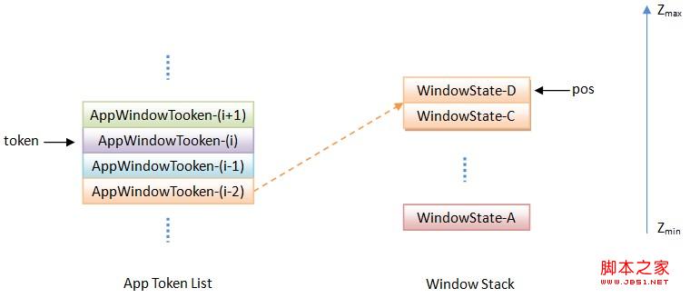 3. 在WindowState堆栈中,AppWindowToken堆栈中的第i+1个AppWindowToken对象所对应的WindowState对象都位于第i个AppWindowToken对象所对应的WindowState对象的上面。