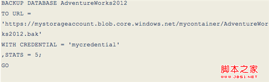 下面的示例演示了如何备份 AdventureWorks2012 数据库到 Windows Azure Blob 存储服务上。