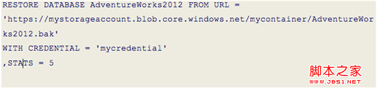如上所述,URL 像我们现在使用的备份设备一样,但它并不是一个物理设备,所以有一些限制。有关它支持的方法的全部清单,请参阅SQLServer Backup and Restore with Windows Azure Blob Storage Service。