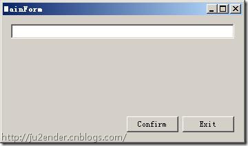下面在窗体中加入一个名为txtInput的TextBox,两个名为btnConfirm、btnExit的Button: