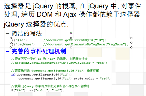 jQuery 理念: 写得少, 做得多. 优势如下: