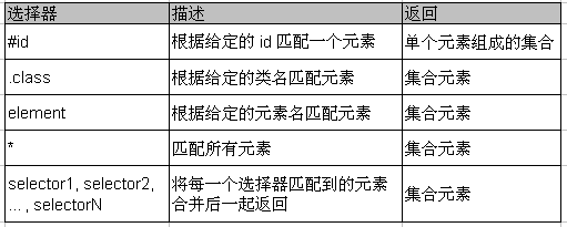 基本选择器是 jQuery 中最常用的选择器, 也是最简单的选择器, 它通过元素 id, class 和标签名来查找 DOM 元素(在网页中 id 只能使用一次, class 允许重复使用).