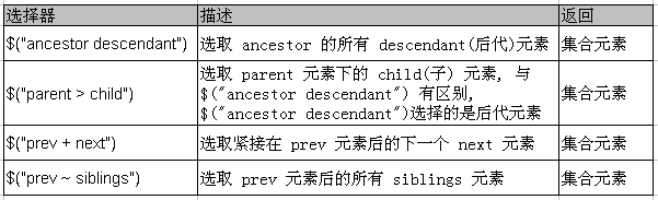如果想通过 DOM 元素之间的层次关系来获取特定元素, 例如后代元素, 子元素, 相邻元素, 兄弟元素等, 则需要使用层次选择器.