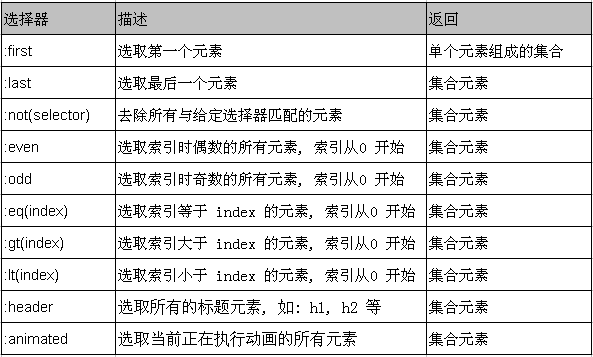 过滤选择器主要是通过特定的过滤规则来筛选出所需的 DOM 元素, 该选择器都以 “:” 开头
