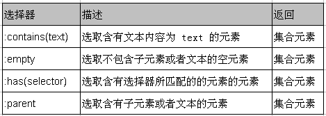 内容过滤选择器的过滤规则主要体现在它所包含的子元素和文本内容上