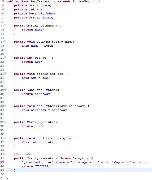 java.util.Date类型的属性可以接收格式为2009-07-20的请求参数值。但如果我们需要接收格式为20091221的请求参数,我们必须定义类型转换器,否则struts2无法自动完成类型转换。