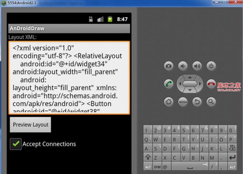 序下载你的 GUIs, 也允许你在一个 Android 设备上预览你的 GUIs