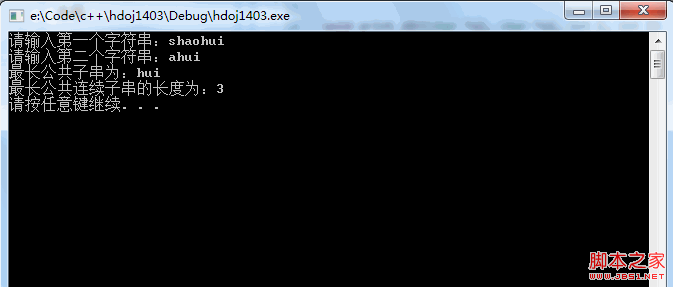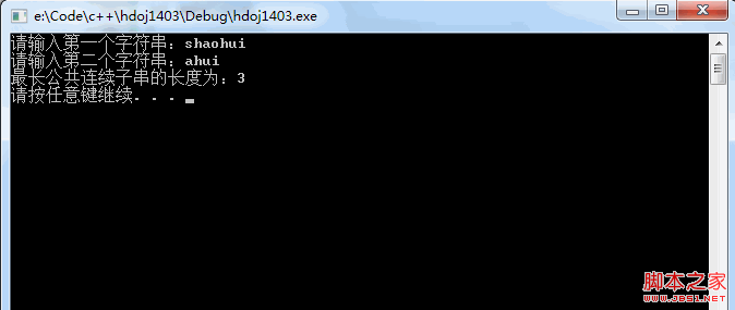 其中s1="shaohui",s2="ahui",最后求得的结果为3